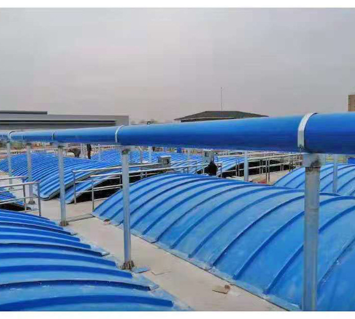 3、輕質(zhì)高強、安裝方便:玻璃鋼蓋板比重僅為鋼制品的1/3至1/4,固化程度高,載荷負重大,強度高,適用于大跨度池體,同時蓋板可分為若干小塊,便于運輸、安裝。