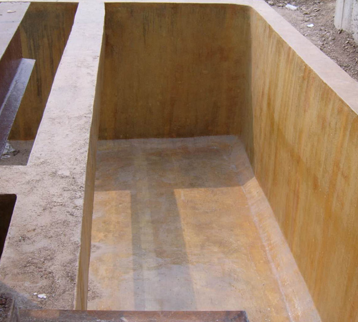 用于儲存水、酸堿液體、廢水的混凝土水池如:消防水池、中水池、酸堿池、污水池、廢水池、氧化池、調(diào)節(jié)池、沉淀池、隔油池、游泳池等由于水及酸堿液體長期浸泡、腐蝕,各大中城市的高層建筑生活水池、消防水池、蓄水池及化工、醫(yī)藥、電力、機械、電源、電鍍、電子、鋁材、陶瓷、冶金等行業(yè)內(nèi)廣泛使用。
